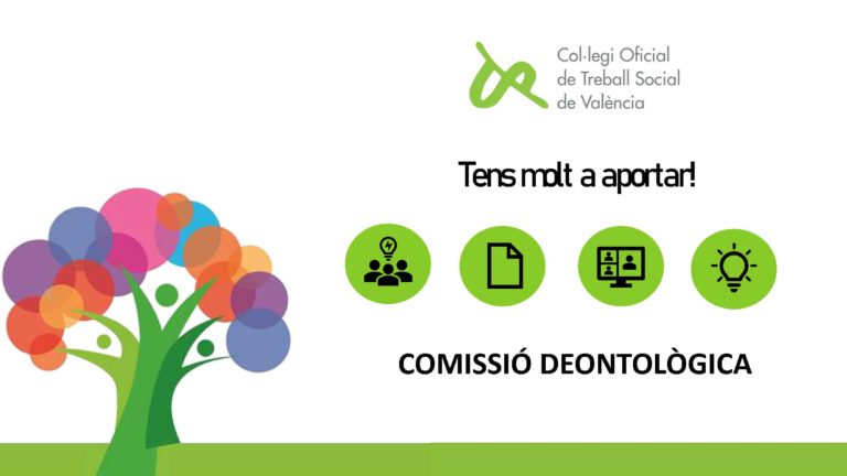 Se ha creado este espacio en la idea principal de trabajar en la elaboración de una serie de propuestas, análisis y debates que ayudan a determinar la posición de las colegiadas y colegiados en este ámbito, así como emitir recomendaciones al respeto, siempre desde el punto de vista del papel de la trabajadora y trabajador social.